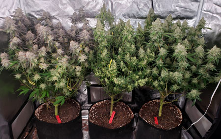 A recent harvest. These cannabis plants grown with the Fox Farm trio in auto-watering pots (see the grow journal). The plants clearly loved this combo!