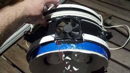 With this much wattage, a more powerful fan will be needed to extract the heat from the bulbs. A 220v fan can be mounted on the light-top for this purpose. Make sure this fan is pointing outward from the inside of your bucket, to pull hot air away from the lights and out the top.