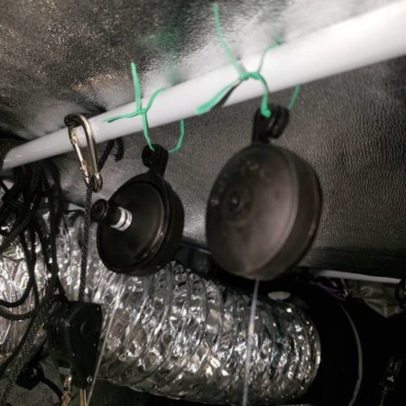 - Two different grow lights – One with 250W HPS, the other with a ViparSpectra 300 + 450 (total power draw around 300W)