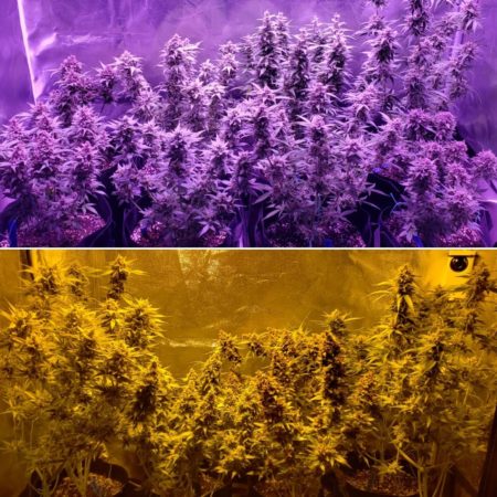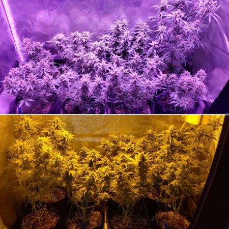 Top of each picture shows the ViparSpectra LED tent (purple), and bottom shows the HPS tent (yellow)