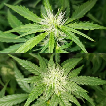 August 18 – Bud comparison time! Each of these pictures shows the same strain, but the top bud is from the ViparSpectra LED tent while the bottom bud is from the HPS tent.
