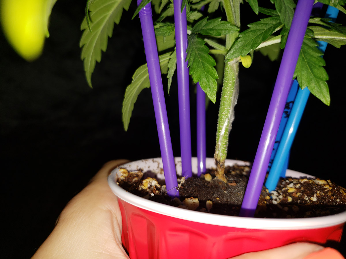 Propping the seedling up with crazy straws was too little too late. The damage had been done and the seedling never recovered.