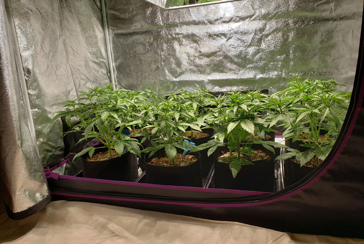 Example of 8 different autoflowering cannabis strains grown in a grow tent