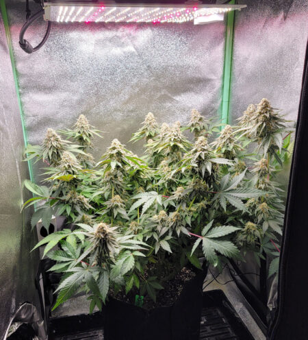 Spider Farmer LED grow tent at harvest time - GrowWeedEasy.com