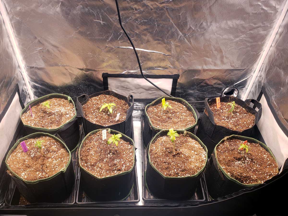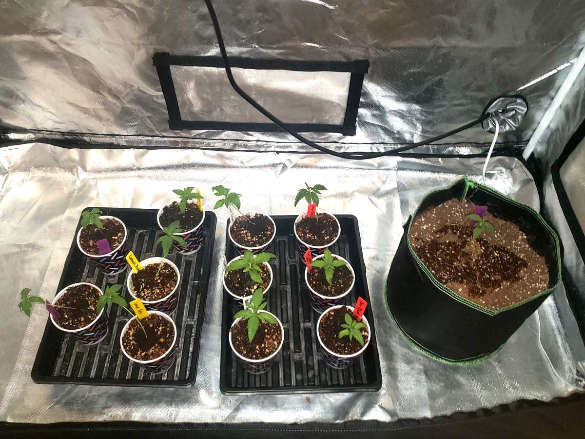 Next week they should be in 5-gallon pots with one plant of each strain in each tent. Then the real fun begins!