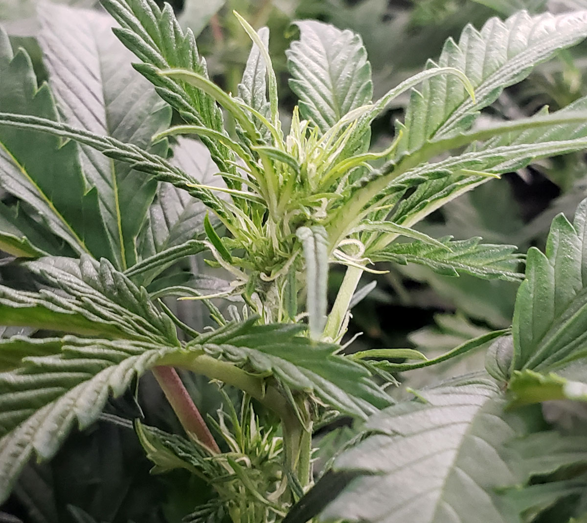 - Slower flowering – Although these plants have started flowering, they just have a few pistils/hairs with no significant buds yet. It seems like these plants have overall been slower to start flowering.