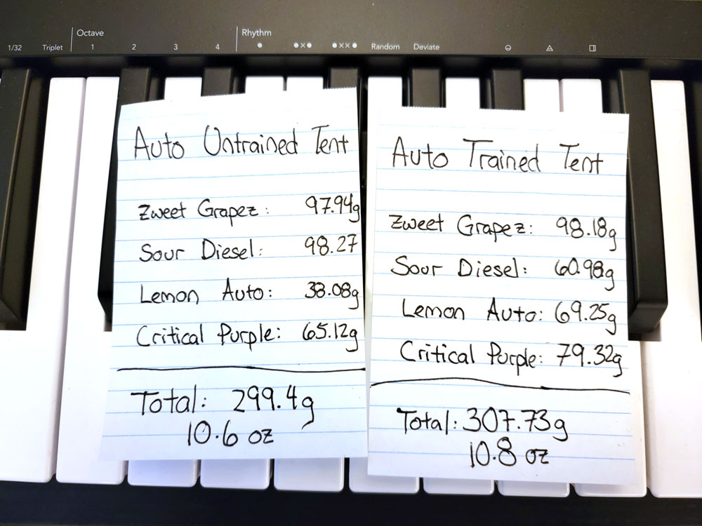There isn’t a single measurable factor where the untrained tent won. Now it’s important to remember that these are autoflowering plants, which means they were grown from seeds instead of clones. Instead of twins, the plants were siblings. That means that the changes between the tents could be partly a matter of natural variation. I would have to repeat the test a few more times in order to feel confident about the results as far as THC, yields, and terpenes.