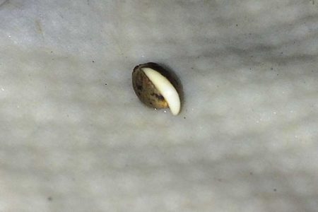 “Found” seeds may have poor germination rates, for example, they may start germinating and “stall out” like this one did. It seemed healthy but never grew past this point.