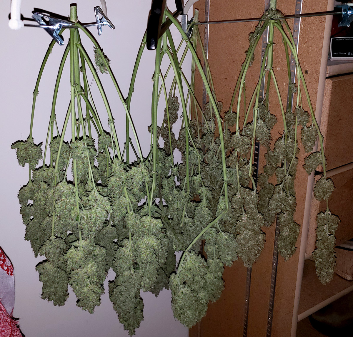 The plants with big chunky buds drying in the front are Ultimate Autos