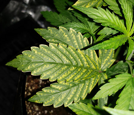 Here another picture of the same plant to help you get an idea of how this deficiency looks on different leaves