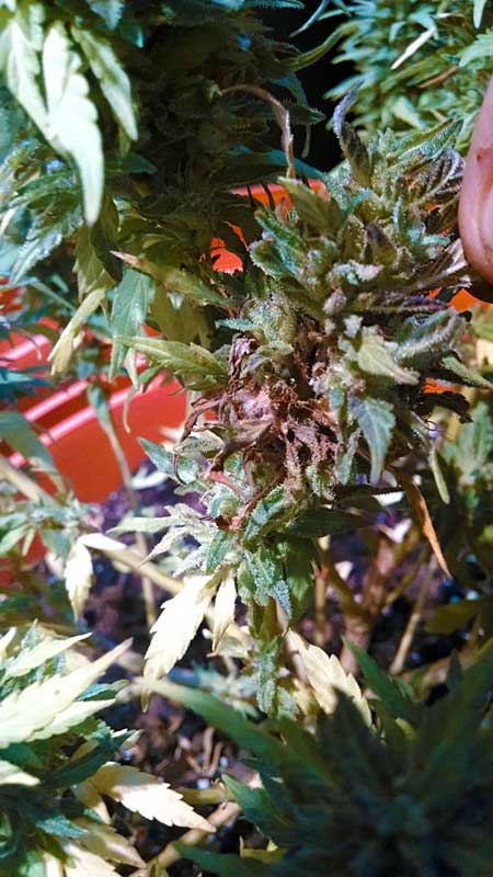 Just one part of this cannabis bud is showing signs of bud rot... so far