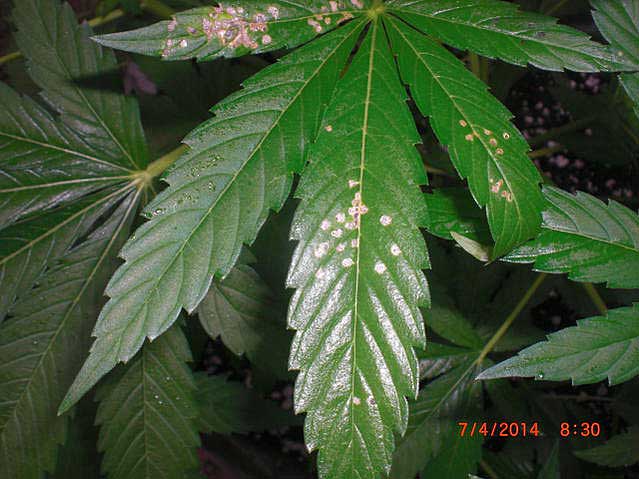 Fourlined plant bugs actually suck out the sap from cannabis leaves, which leaves pale spots that turn brown or bronze over time. Unlike caterpillars, a fourlined plant bug won’t actually put holes in the marijuana plant’s leaves, just spots.
