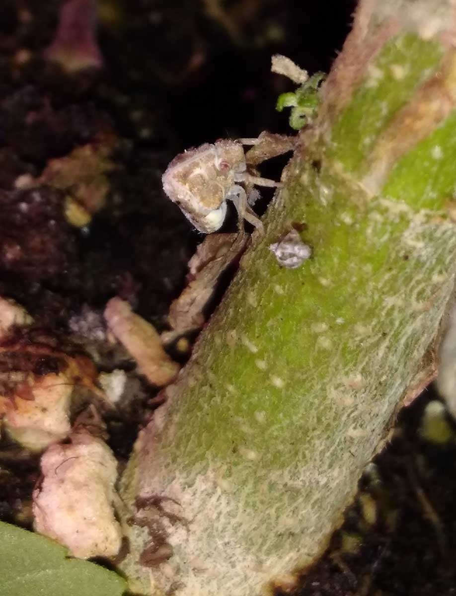 Their nymphs (baby planthoppers) may have beedy red eyes, and I’ve heard a grower desribe them as looking like a hermit crab