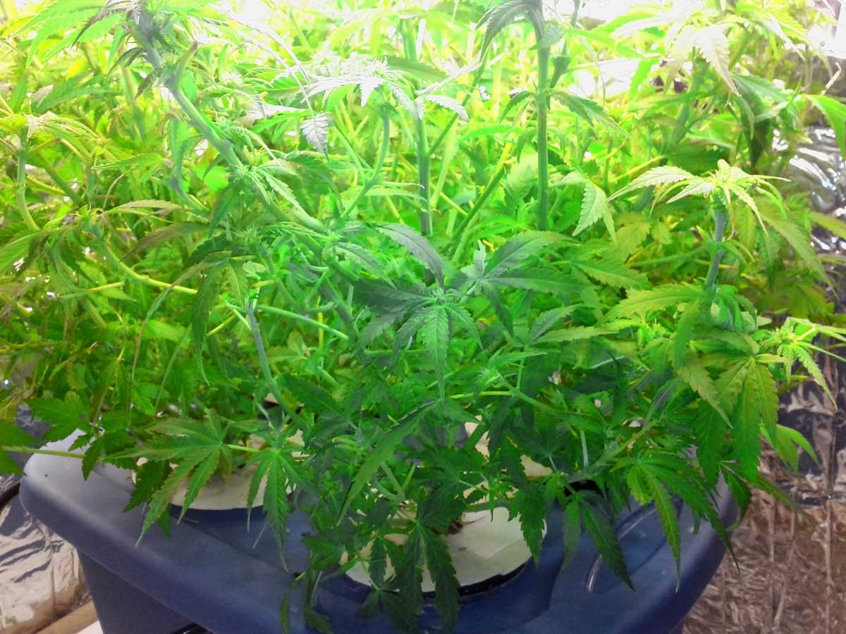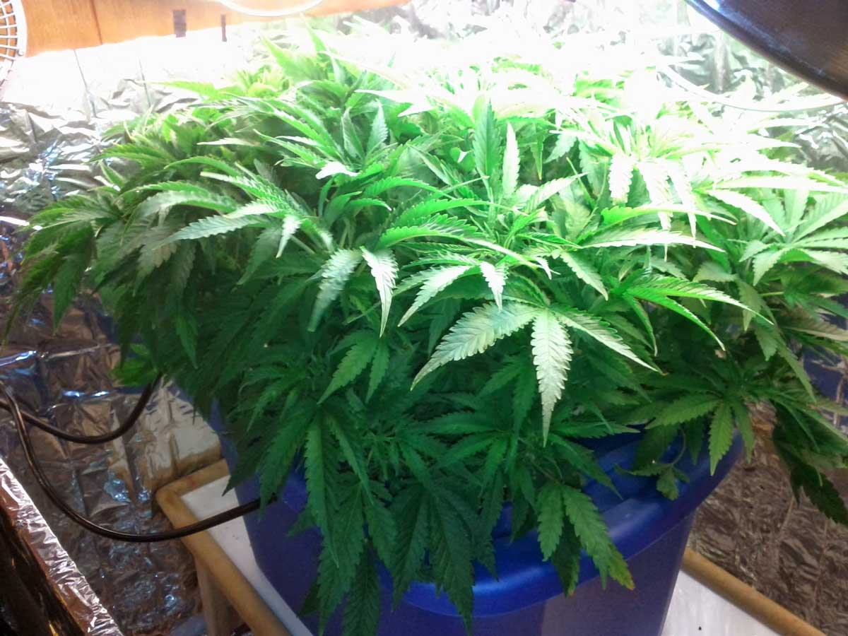 Cannabis plants in hydroponic DWC tubs (bubbleponics)