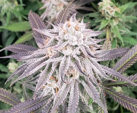 On “duckfoot” strains like Frisian Duck, the leaves don’t look like regular cannabis leaves! Purple buds with a mild, spicy pine scent.