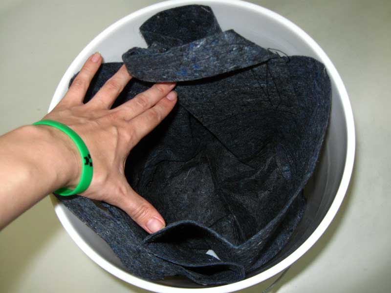 2.) Line inside of 5-gallon bucket with fabric container.