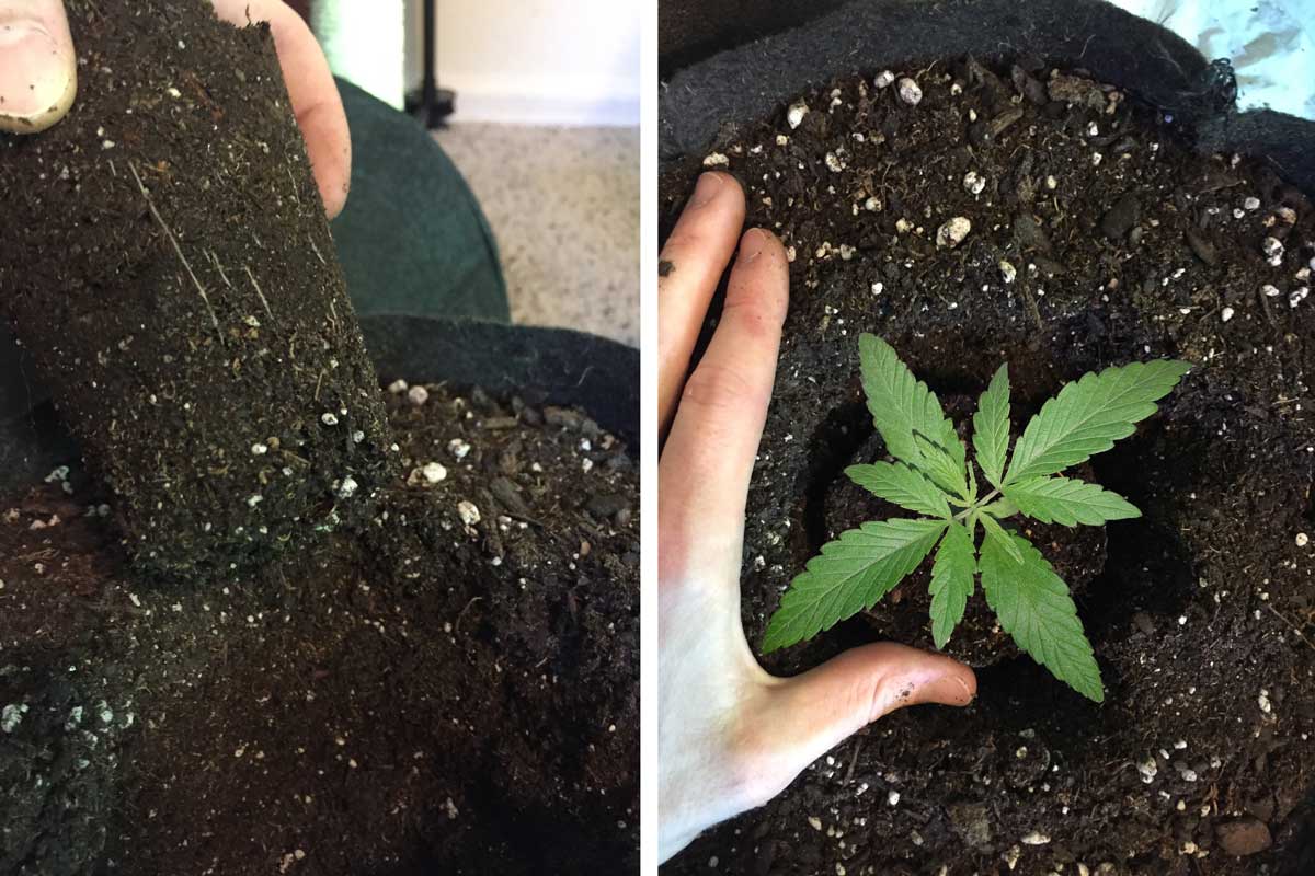 Don’t worry if the mix feels soaking wet, it will dry in the fabric pots once you have a fan blowing over them in your grow tent.