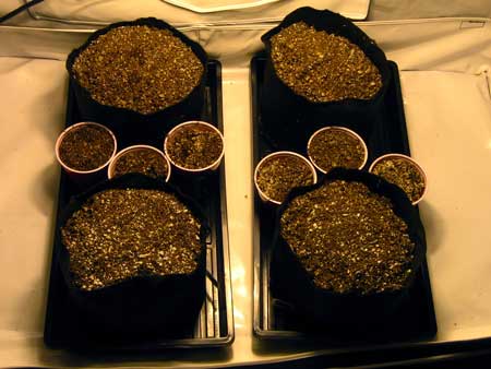 Now you fill the rest of your fabric containers and possibly solo cups for seedlings.