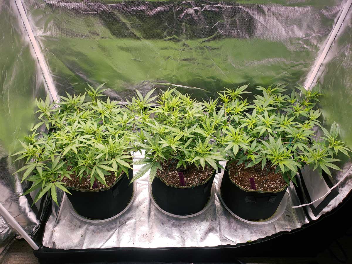 Keep gently bending over any tall branches to keep cannabis plants flat and wide like a table.
