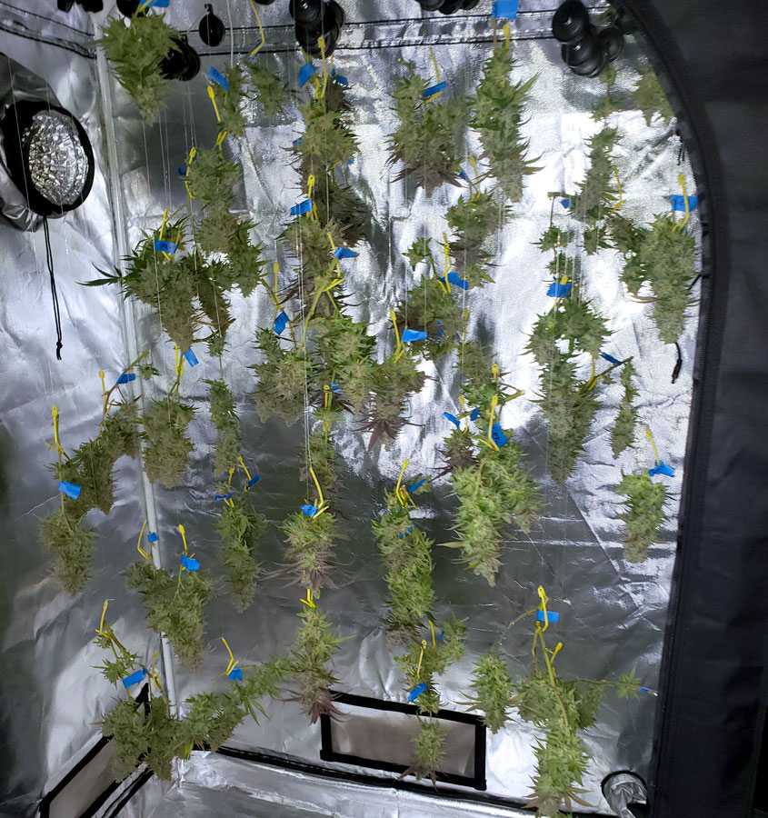 I usually dry my newly harvested buds in my grow tent, or a closet