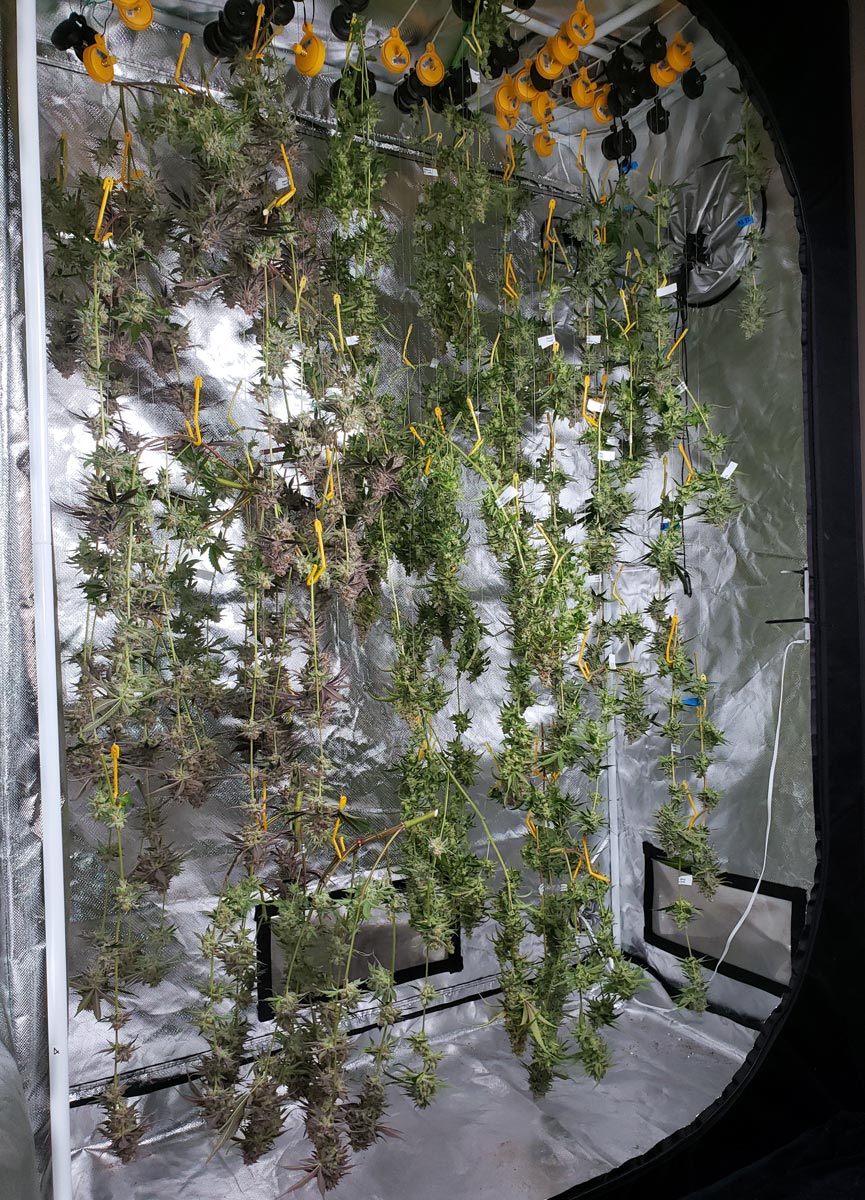 I personally cut down branches one at a time. Here’s a plant that is halfway through being harvested.