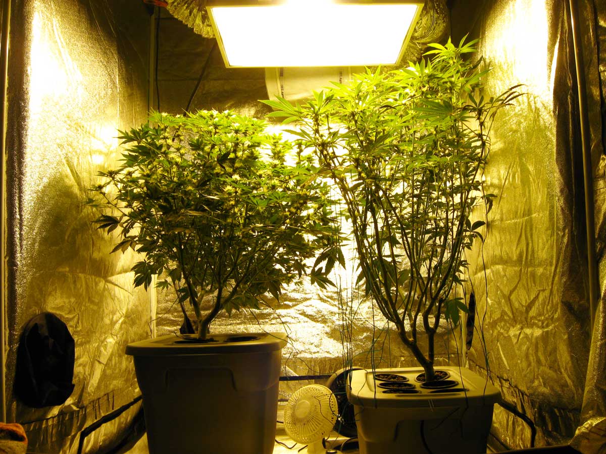 The grower raised the shorter plant so it could be closer to the light. As is common with Indica plants, it was more sensitive to heat and light, and couldn’t be kept as close to the grow light as the Sativa.
