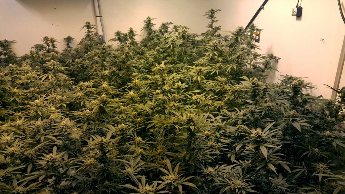 The grower was rewarded with more than 15 lbs (240 ounces) of premium dried bud from this grow. Huge harvests can be one of the benefits of growing tons of plants, but keeping all your plants in a relatively flat shape like this is what maximizes indoor yields.