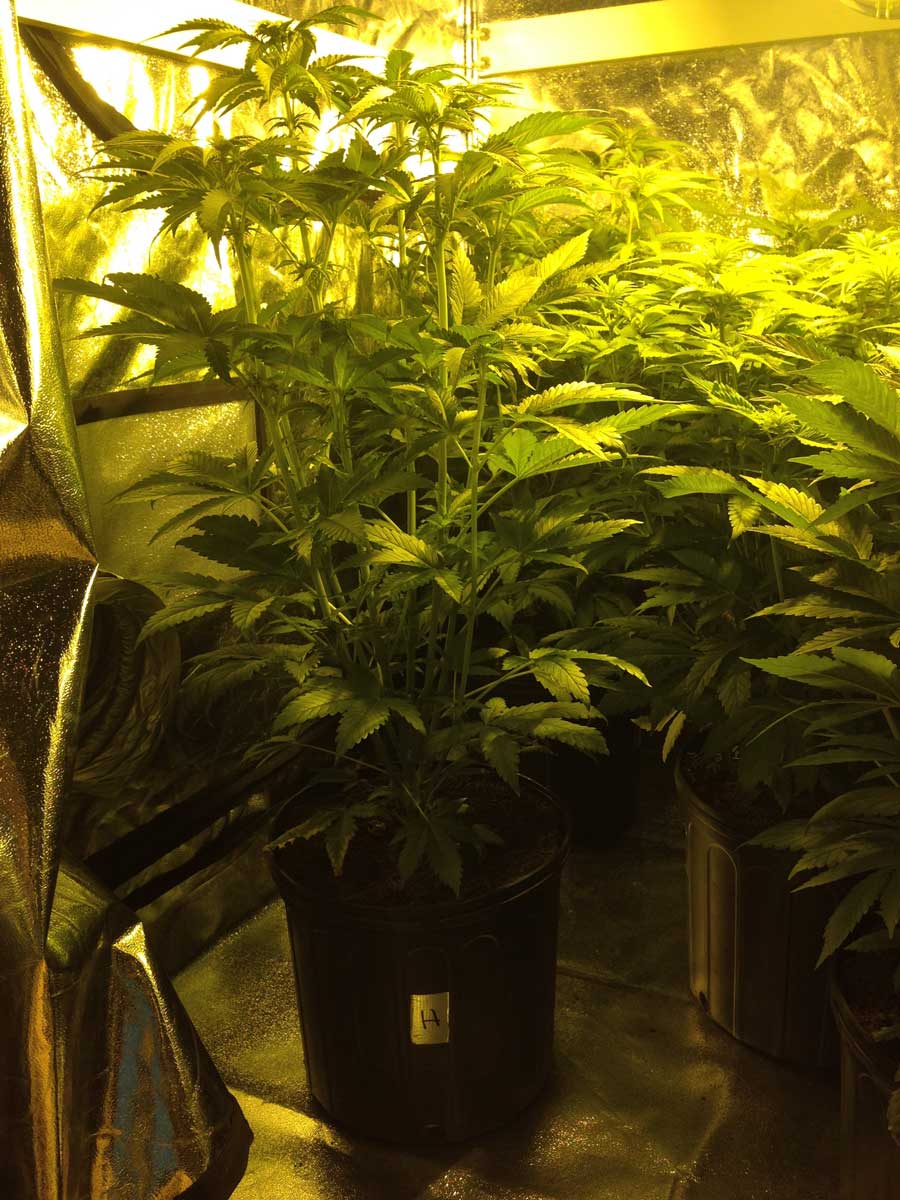 A few weeks later, after some plant training and right before the switch to the flowering stage.