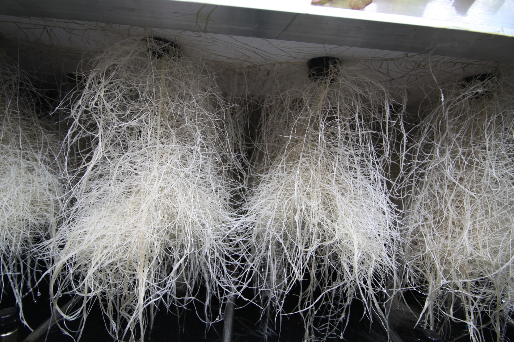 - Good root environment (air and water) – At it’s most basic, the roots need constant access to both air and water for the best results. There’s different ways to provide this environment. You can even grow with your roots hanging in the air with water being misted on them! (here’s a picture). You can use soil or coco coir, or even grow your roots directly in water (with bubbles being made in the water to provide a source of oxygen). When it comes to picking a grow medium for cannabis, if you want the fastest growth you want to choose something that maximizes the water and air to your roots. That’s why growers add things like perlite to their soil/coco, to make air pockets in the soil, or why they grow in fabric pots (lets air in from the sides). The less air the roots get, the slower the plant tends to grow. So when you have plants growing in relatively thick soil like pure composted soil without any perlite, the plants tend to grow slower than they would in an airy soil mix or hydro. That’s always why plants that are overwatered/droopy grow slower – the plant isn’t getting oxygen at the roots.