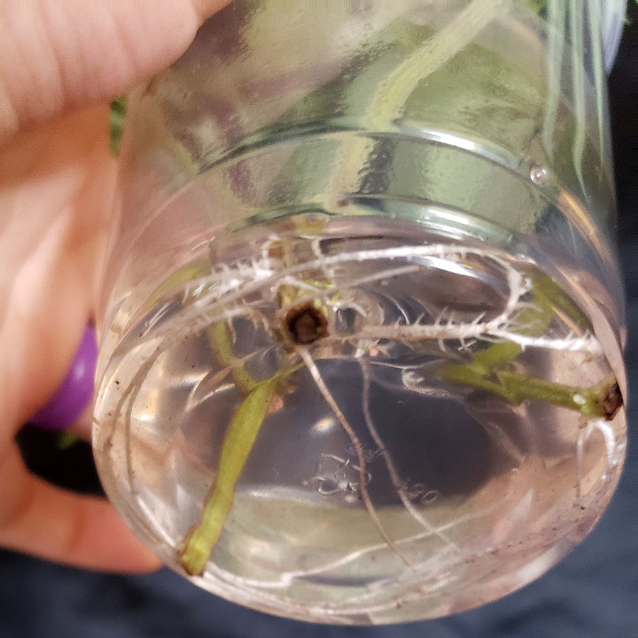 This tutorial will teach you how to make rooted clones like this, in a cup of water.