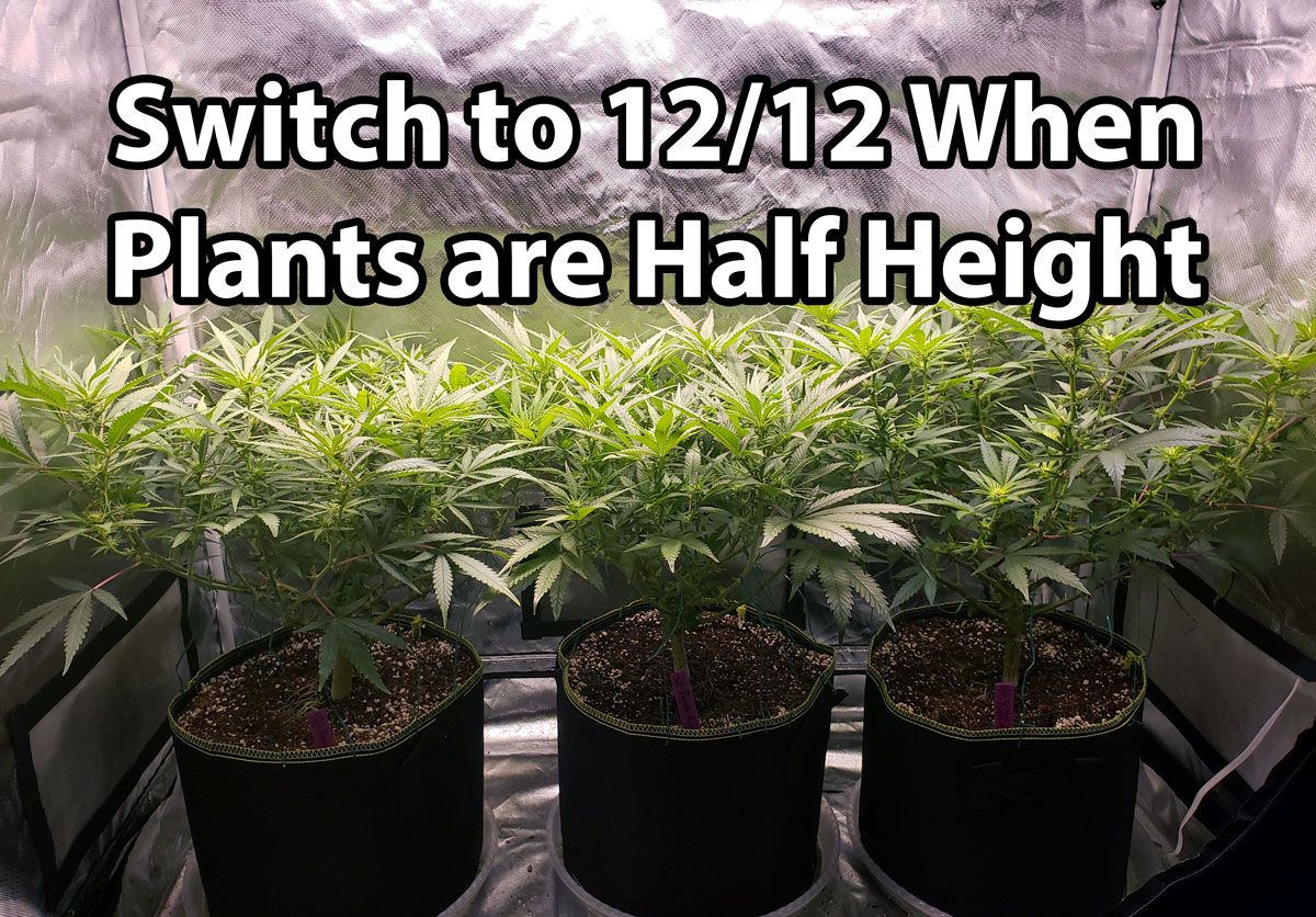 Switch to 12/12 light schedule when cannabis plants are half the final desired height