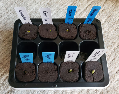 At this point, you can put your seeds directly into their next home. I like to put seeds in Rapid Rooters because that gives me a few more days to examine all the seedlings and see which ones are growing the best before picking the winners for their final home.