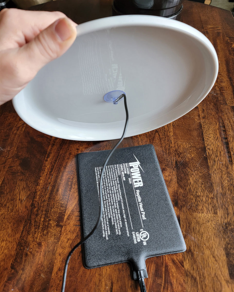 5.) Set the reptile heater to 83°F / 28°C