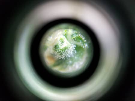 This picture was taken on a Galaxy S9 phone under a ring light. The even spread of light helps make trichomes pop!