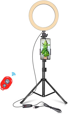- Recommended: Get a ring light, selfie light, or other spotlight meant for photography. A ring light is normally used to help faces look better on video, but work surprisingly well for cannabis plants and especially cannabis buds