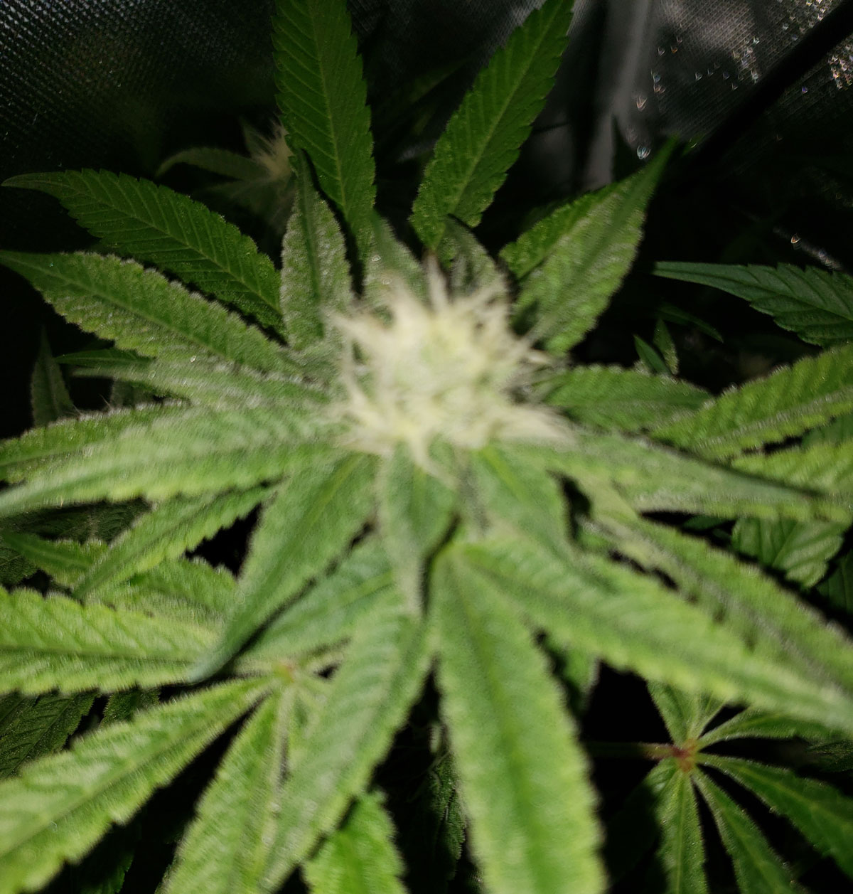 When taking pictures of plants in the flowering stage, one of the best ways to show of your garden is to take a picture with a flash when the lights are off. The flash reflects against all the glittery trichomes on your colas and really shows off how big your colas actually are (which can be difficult to capture with pics in a natural light setting).