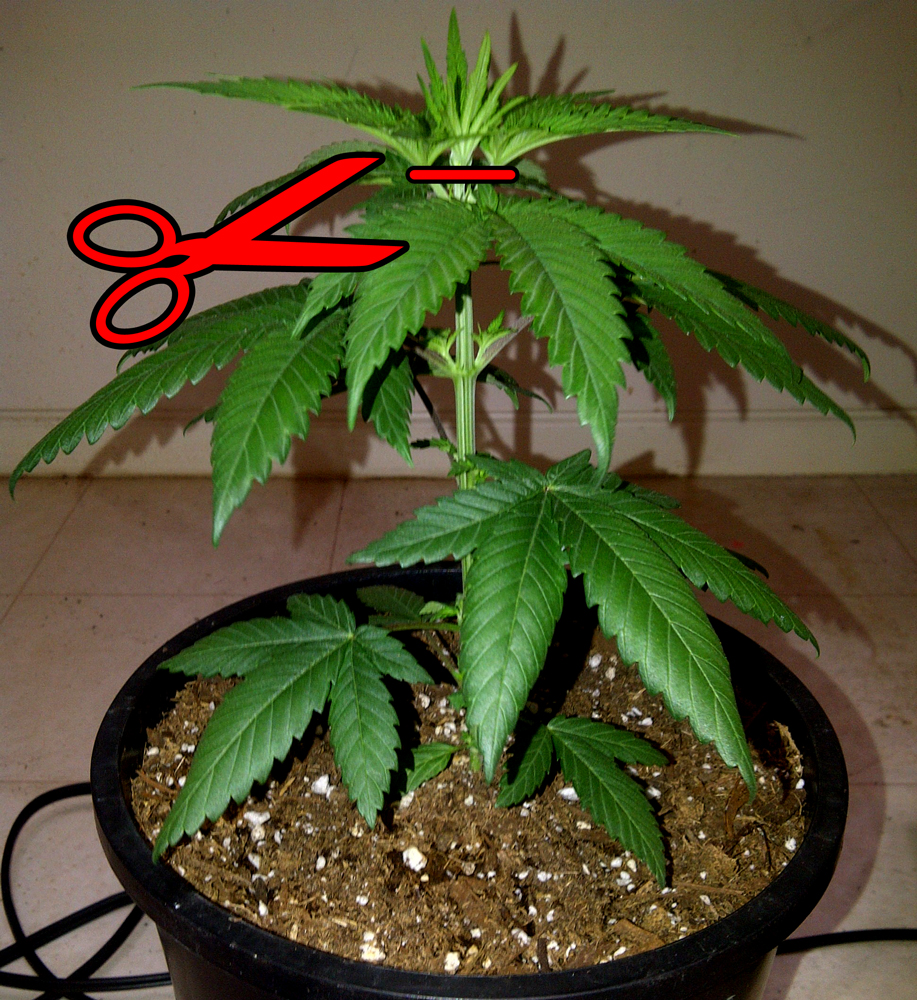 Topping a plant produces more growing tips, which will each turn into its own main bud once the plants start flowering. A growing tip looks sort of star-shaped from above. Make sure each of these “stars” gets access to direct light as plants grow or they won’t keep developing.