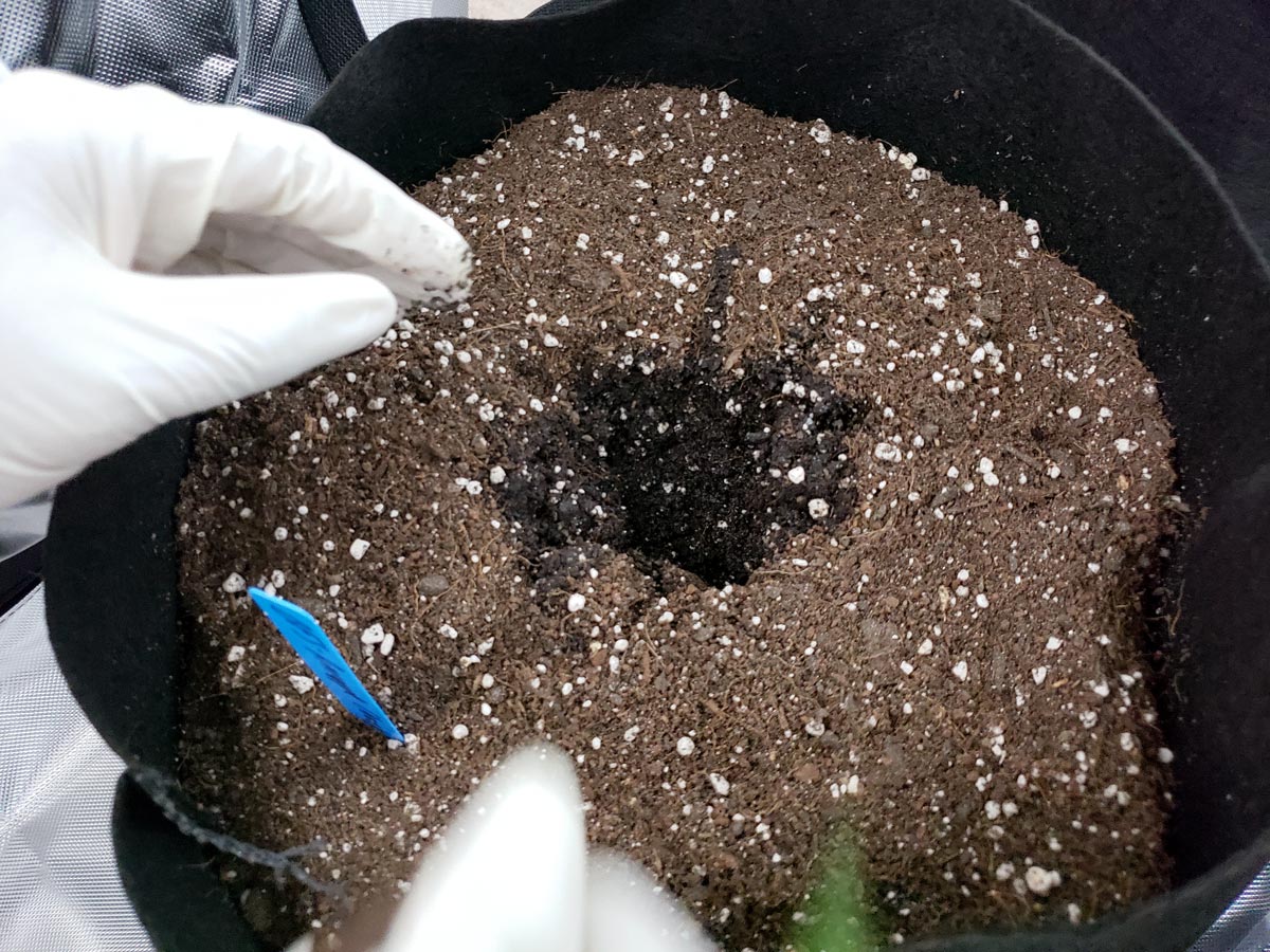 Don’t mix all your soil together! Keep the super soil mix in the bottom 1/3 of the pot. This helps conserve nutrients until harvest. When everything is mixed together, growers are more likely to run into nutrient deficiencies partway through the grow.