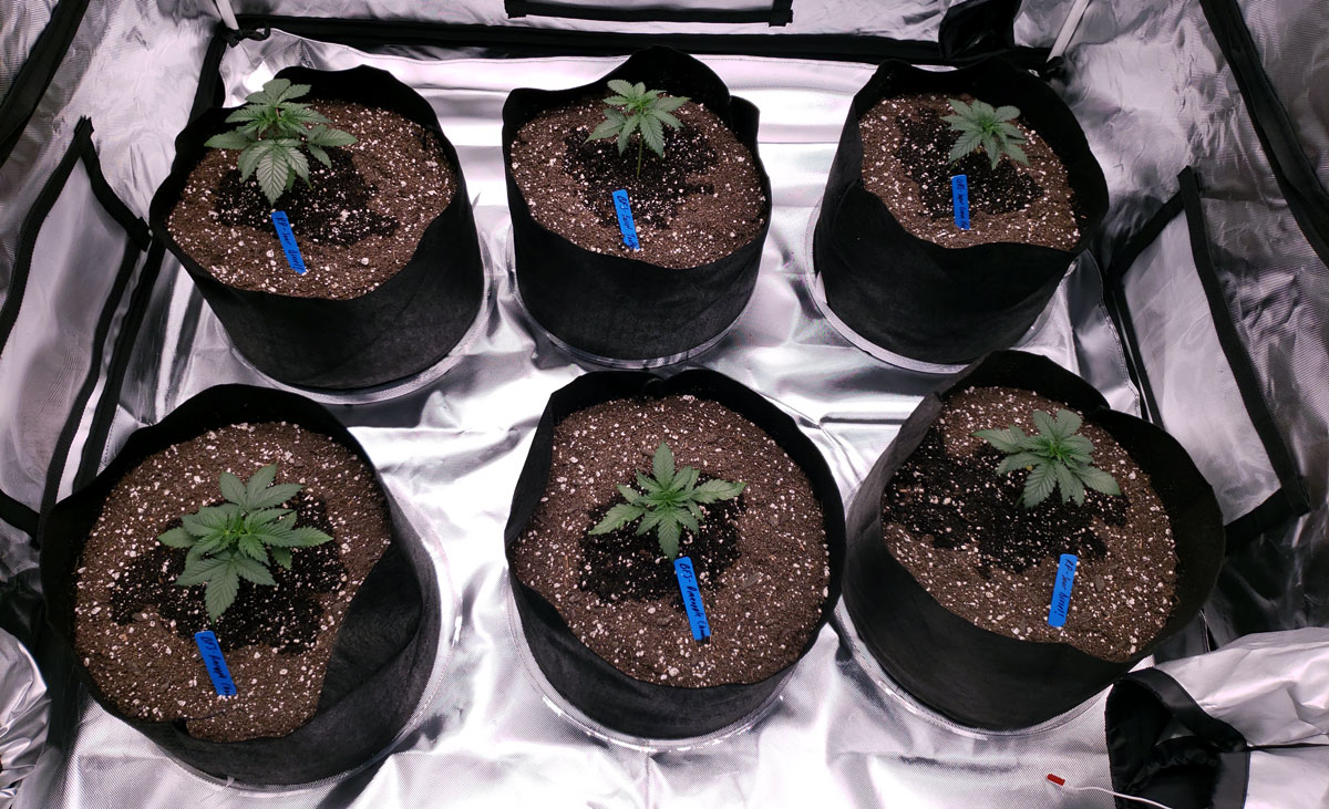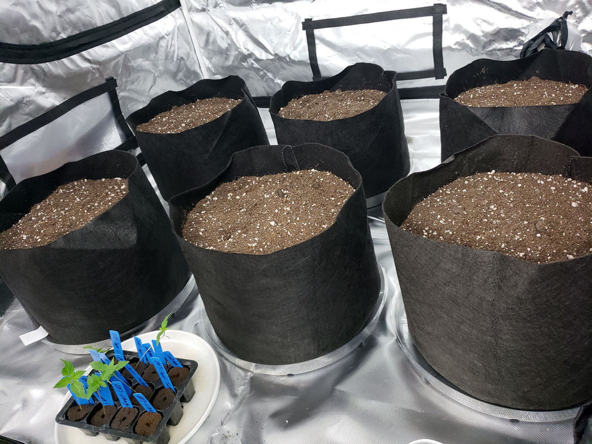 I recommend using 5-gallon fabric pots for this tutorial. This ensures that your plants have enough nutrients to last all the way to harvest. When growing in smaller pots, you run the risk of the plant using up all the nutrients in the super soil before the end of the grow. If that happens, you may end up with nutrient deficiencies and have to supplement with extra nutrients to keep plants happy and healthy. One of the benefits of this grow style is you don’t need to worry about nutrients, so don’t get too-small a pot.