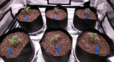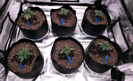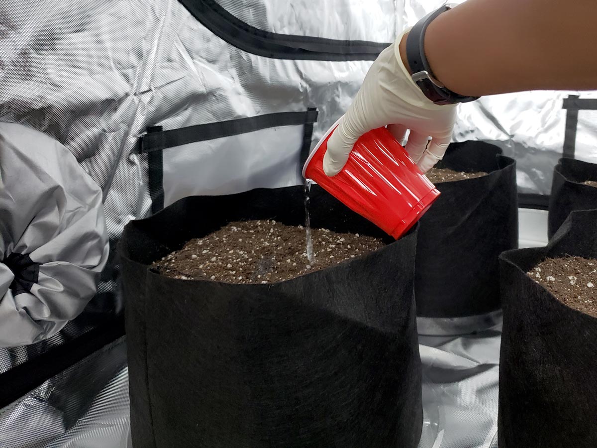 The main difference between growing cannabis in fabric pots and hard-sided pots (from a grower’s perspective) is fabric pots dry out faster because the air from the sides causes water to evaporate. Therefore if you’re following this tutorial but using traditional hard-sided pots, you will need to water much less often than recommended in the watering schedule below.