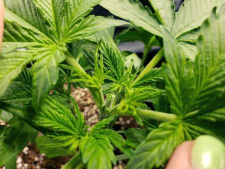 If you want plants to grow multiple buds instead of just one, “top” them (cut off the top tip) above the 5th set of serrated leaves.
