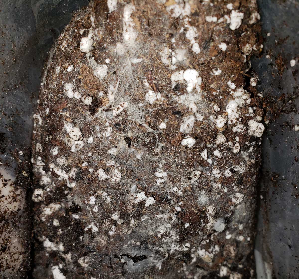 You may see “mold” growing on the top of your super soil. This is normal. This is “living” soil and this particular strain of “mold” is part of the soil ecosystem. Just mix it in.