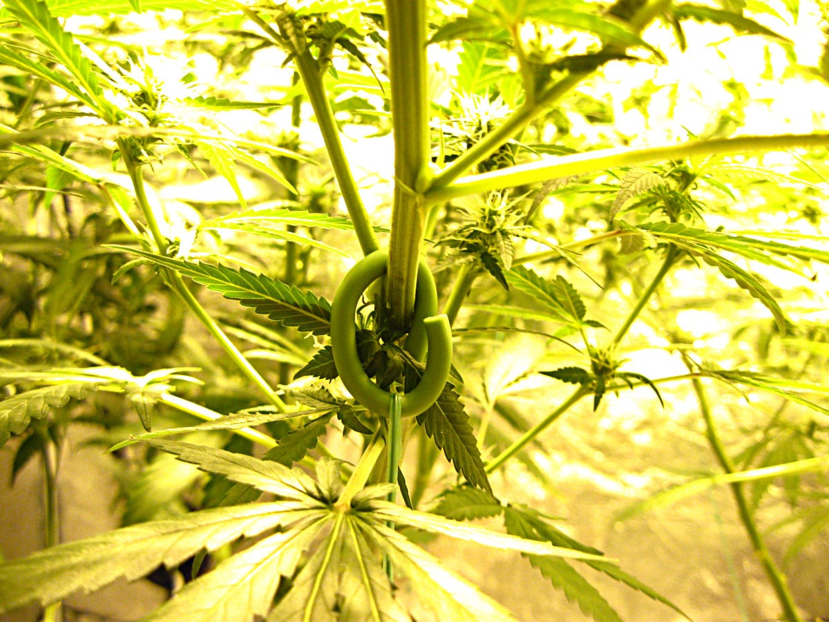Anything sharp can cut into your plants as they grow bigger, which you don’t want. Open wounds are not good for cannabis growth. But soft wire ties, twisty ties, or anything soft and bendable will work perfectly without hurting your plants.