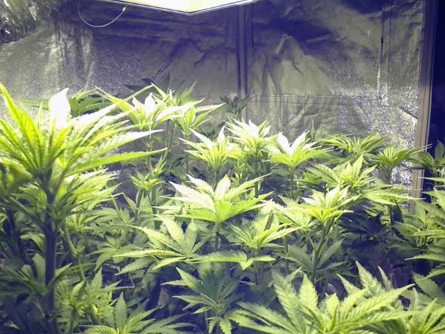 These two Aurora Indica cannabis plants were LST’ed to produce many fat, thick colas.