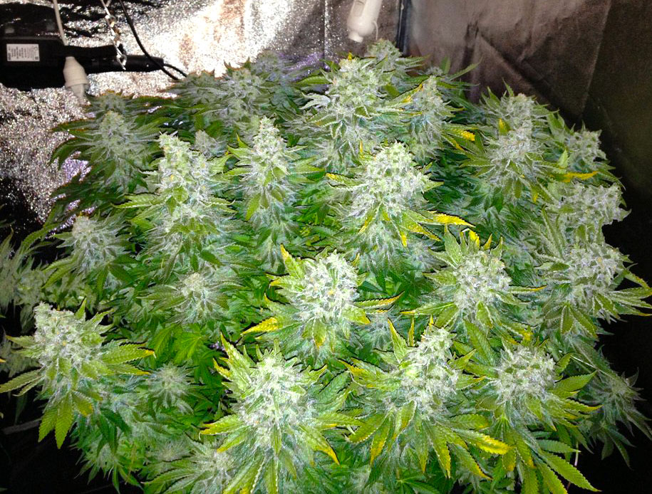 Example: This White Widow marijuana plant with many huge colas is the result of LST training!