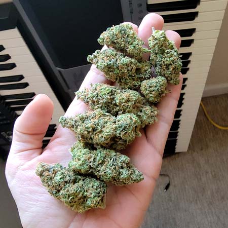 - Buds are long and solid (“colas”) as opposed to nuggets