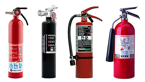 A few types of effective extinguishers: Normal (ABC), and clean extinguishers (for example filled with HCFC-123 or CO2). Clean extinguishers don’t leave a residue and are safe for electronics, but cost a lot more.