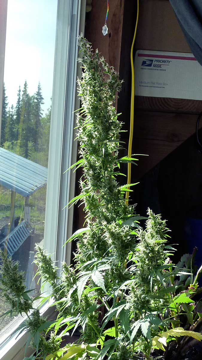 Probably the biggest window-grown cannabis plant I've ever seen, click the pic to see the fulll-size version!