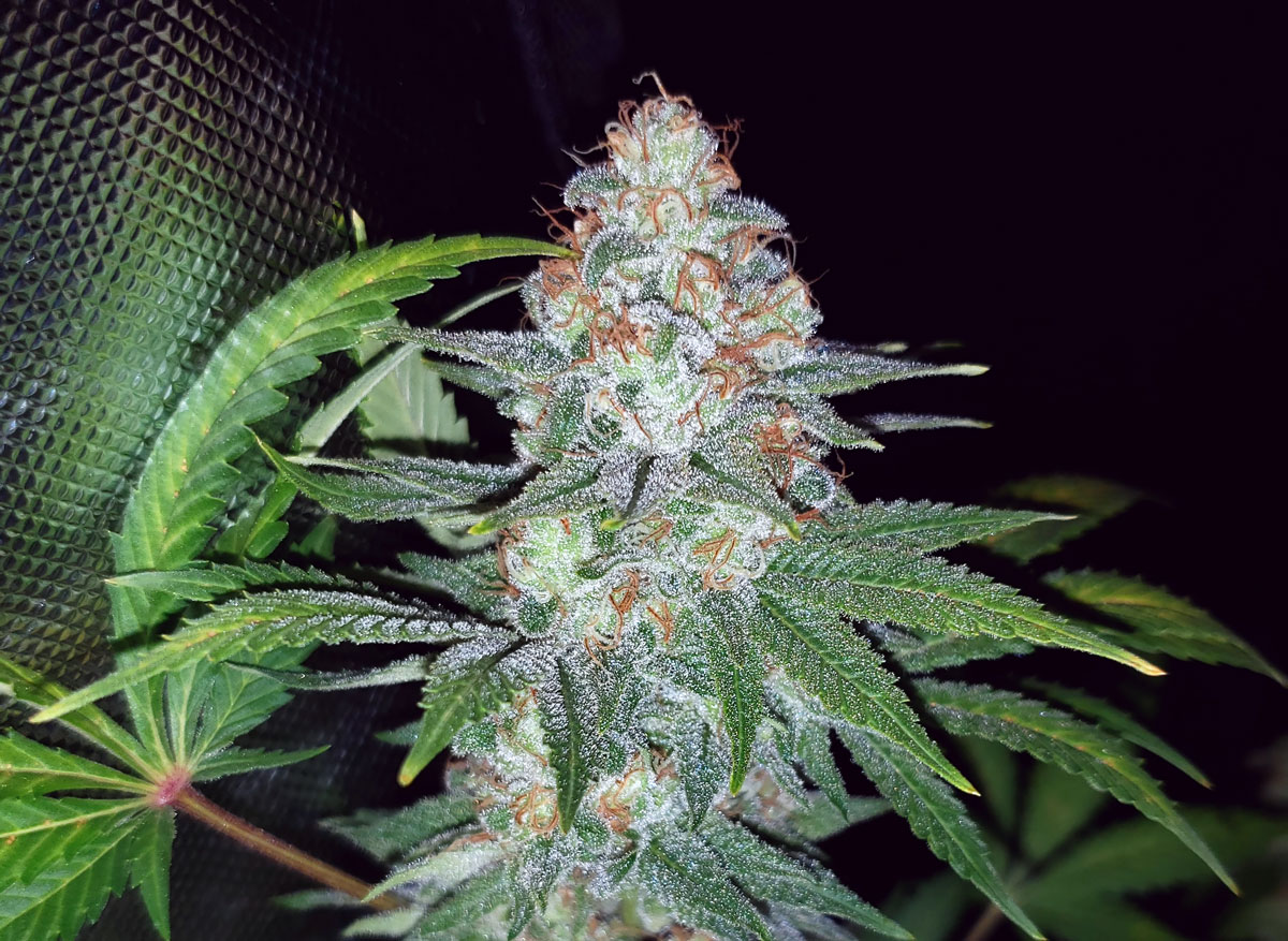 Black Jack Auto by Sweet Seeds. It’s in the harvest window, but could probably go another week for max potency.