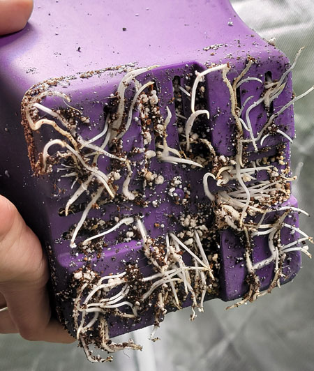 1. Avoid hard-sided containers (most important) – Instead, use air pots or fabric pots, which let air in from the sides. This is the best defense against rootbound.  Exposure to air not only prevents rootbound from happening, but also causes cannabis plants to grow faster and yield better. Learn more about air pots vs fabric pots vs regular pots.